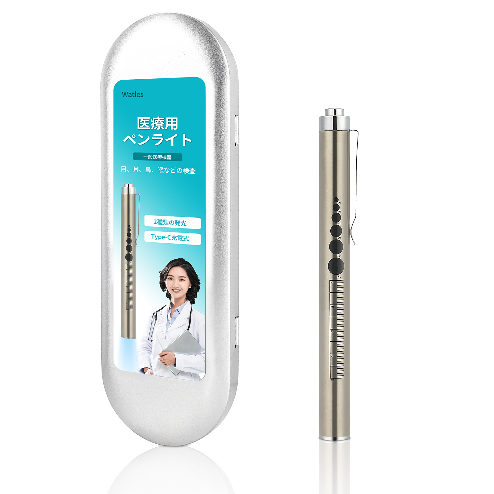 柔和的暖光对眼睛友好,能减轻刺激,非常适合眼部检查。白光明亮,适合耳鼻喉等检查。按一下顶部按钮可以开关电源,切换发光颜色。关闭状态下,第一次按下切换为白光,第二次按下切换为暖光,第三次按下则关闭。